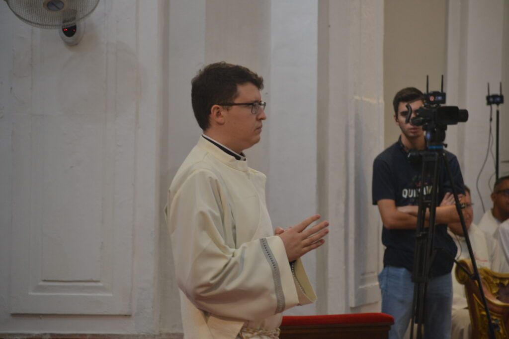 En tercer lugar, habló de la misión a la que son llamados los ministros ordenados: hacer que todos los fieles reciban de manera consciente, libre y agradecida la obra de Cristo y la manifiesten en su vida. Recordó que el ministerio no se mide en horarios, sino que exige la entrega de toda la vida: «Sé tú un modelo para los fieles, en el hablar y en la conducta, en el amor, la fe y la honradez» (cf. 1 Tim 4, 16).
