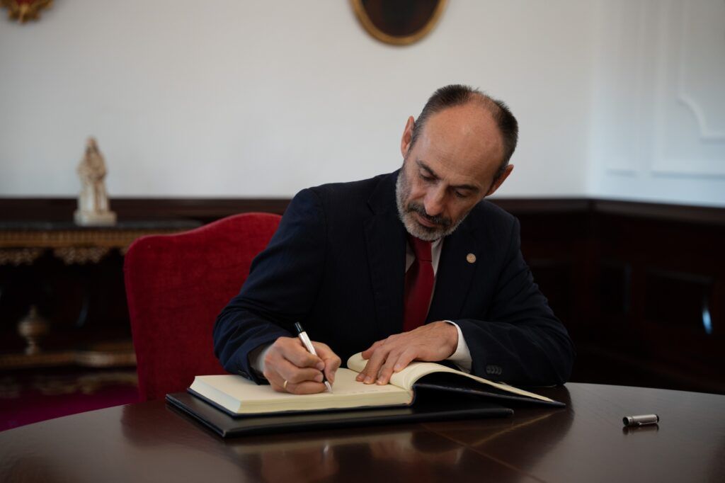 En el transcurso de la visita, el rector firmó en el libro de honor del Obispado de Huelva, gesto con el que dejó constancia de este primer encuentro institucional. Posteriormente, tuvo oportunidad de recorrer las dependencias del palacio episcopal, conociendo de cerca el trabajo pastoral, social y cultural que la Diócesis lleva a cabo en el territorio onubense.