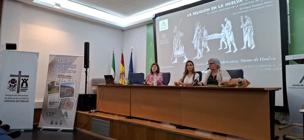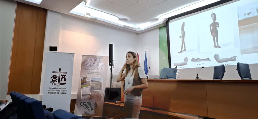 La Delegación Diocesana de Educación y Cultura, en colaboración con el CEP Huelva-Isla Cristina, ha celebrado este martes, 21 de octubre, la primera sesión del curso “La religión en la Huelva tartésica. El Legado Diocesano en la asignatura de Religión”, una propuesta formativa dirigida al profesorado de Religión con el propósito de profundizar en el conocimiento del patrimonio histórico y arqueológico onubense y su aplicación en el ámbito educativo.