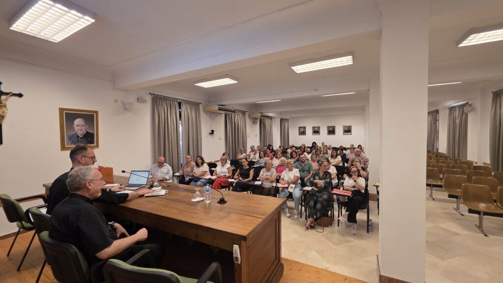 La primera sesión corrió a cargo de D. José Ángel Romero Pérez, delegado diocesano de Catequesis, Iniciación Cristiana y Catecumenado de Adultos, quien ofreció una profunda reflexión sobre la misión del catequista en el contexto pastoral actual. Su intervención abordó también temas como la espiritualidad misionera y evangelizadora, la catequesis como formación integral, los estilos de acompañamiento y la coherencia en los procesos formativos, destacando en todo momento la relevancia de una formación constante.