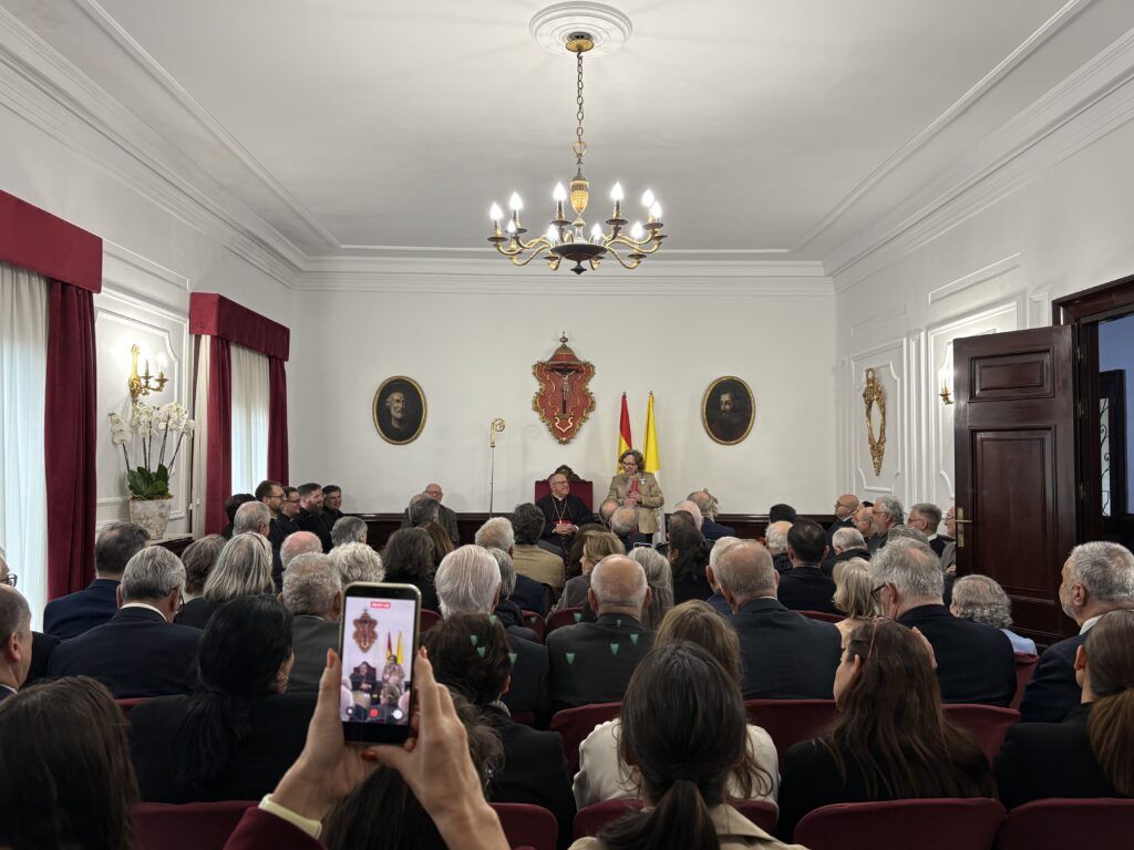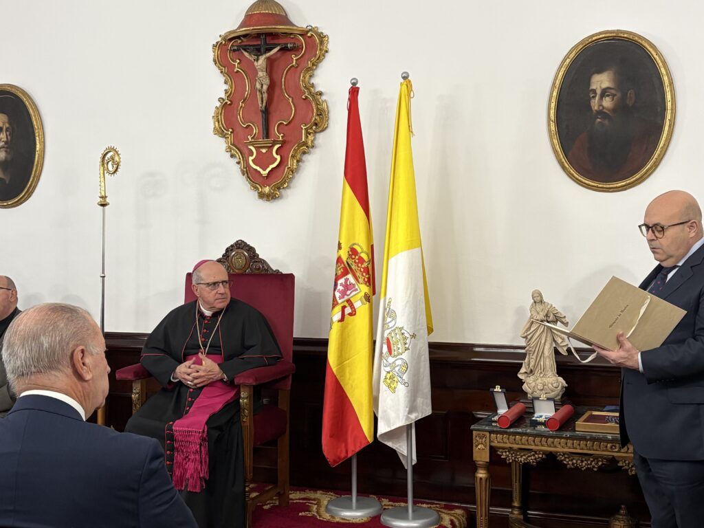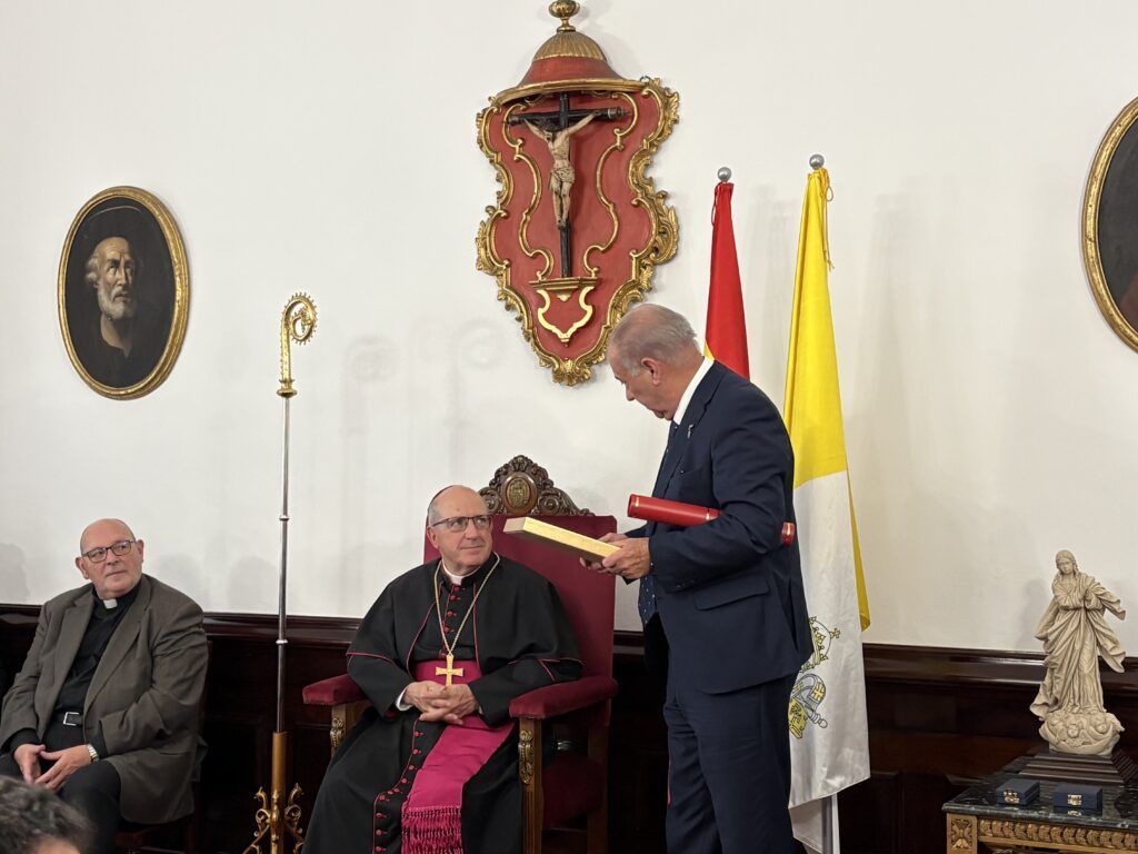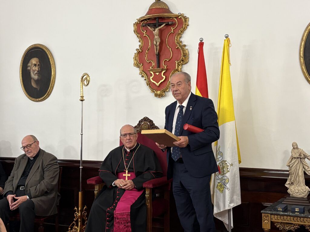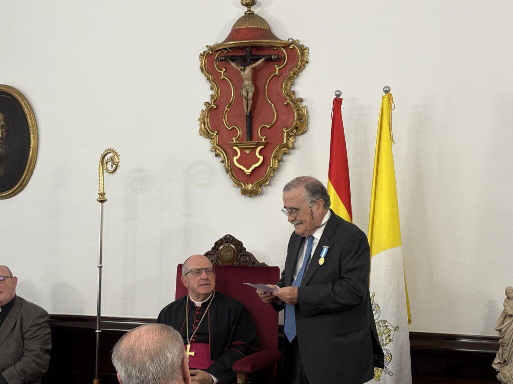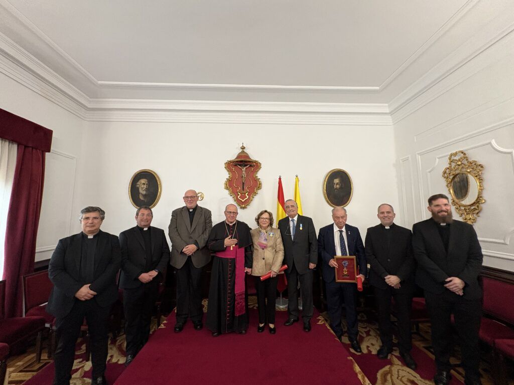 Tras la Eucaristía, los actos se trasladaron al Obispado, donde tuvo lugar el acto institucional de imposición de la distinción “Pro Onubense Ecclesia, concedida a quienes han ofrecido a lo largo del tiempo un testimonio ejemplar de fe y servicio a la Iglesia de Huelva.