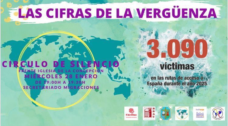 En esta ocasión, el Círculo de Silencio se desarrollará bajo el lema “Las cifras de la vergüenza”, poniendo el foco en las más de 3.000 personas que han perdido la vida en las rutas de acceso a España durante el año 2025, una realidad que interpela a la conciencia colectiva y a la responsabilidad social.