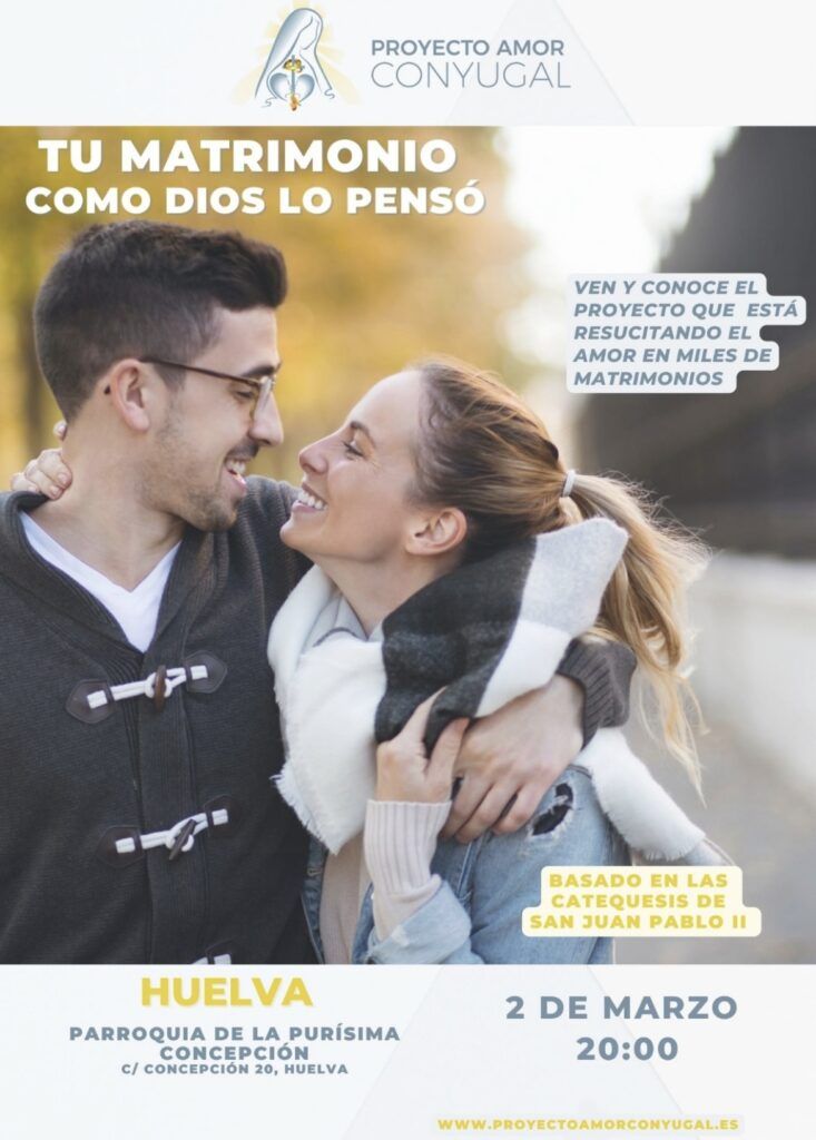 Nacido al amparo de la Virgen María, el Proyecto Amor Conyugal tiene como objetivo ayudar a los esposos a redescubrir la grandeza y la belleza del sacramento del matrimonio desde una vivencia profunda de la fe. Inspirado en las catequesis de san Juan Pablo II sobre el amor humano, propone un itinerario de espiritualidad conyugal que ofrece herramientas concretas para crecer en la unidad, la comunicación y la entrega mutua, poniendo a Cristo en el centro de la vida matrimonial.