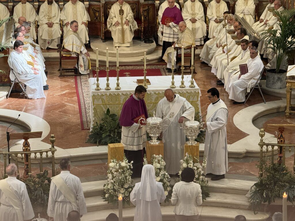 Se trata de una de las celebraciones más significativas del año litúrgico, en la que el obispo, junto a su presbiterio, bendice los óleos de los catecúmenos y de los enfermos, y consagra el Santo Crisma, que será utilizado a lo largo del año en la administración de los sacramentos del Bautismo, la Confirmación y el Orden Sacerdotal, así como en la dedicación de iglesias y altares.