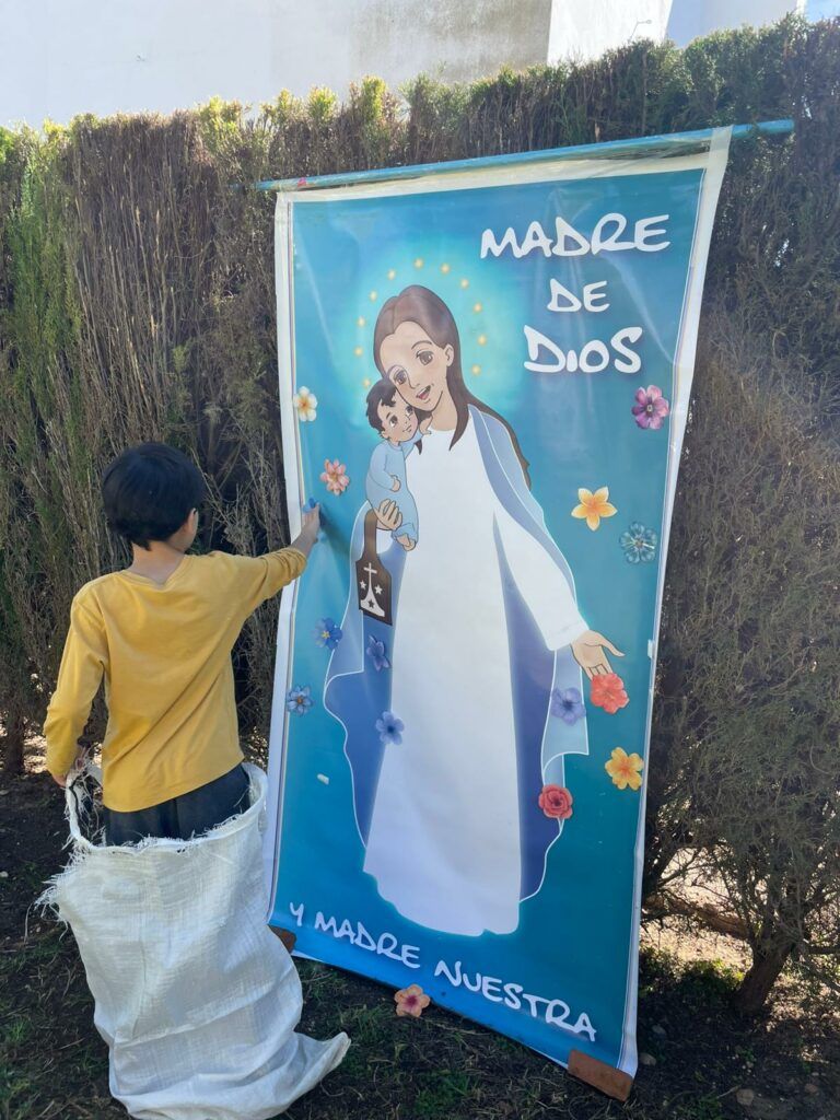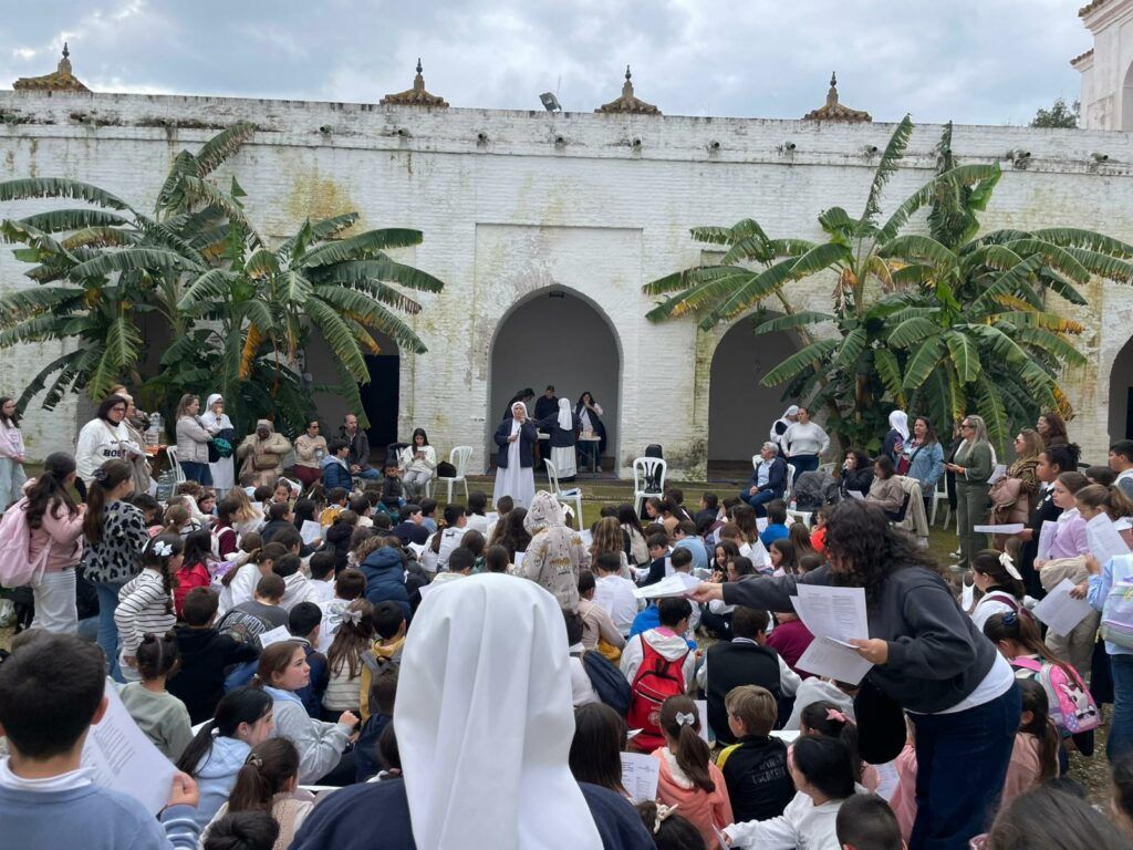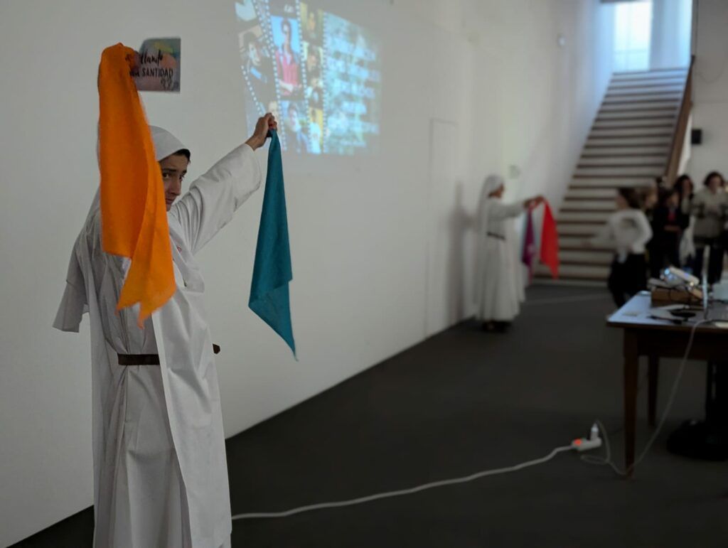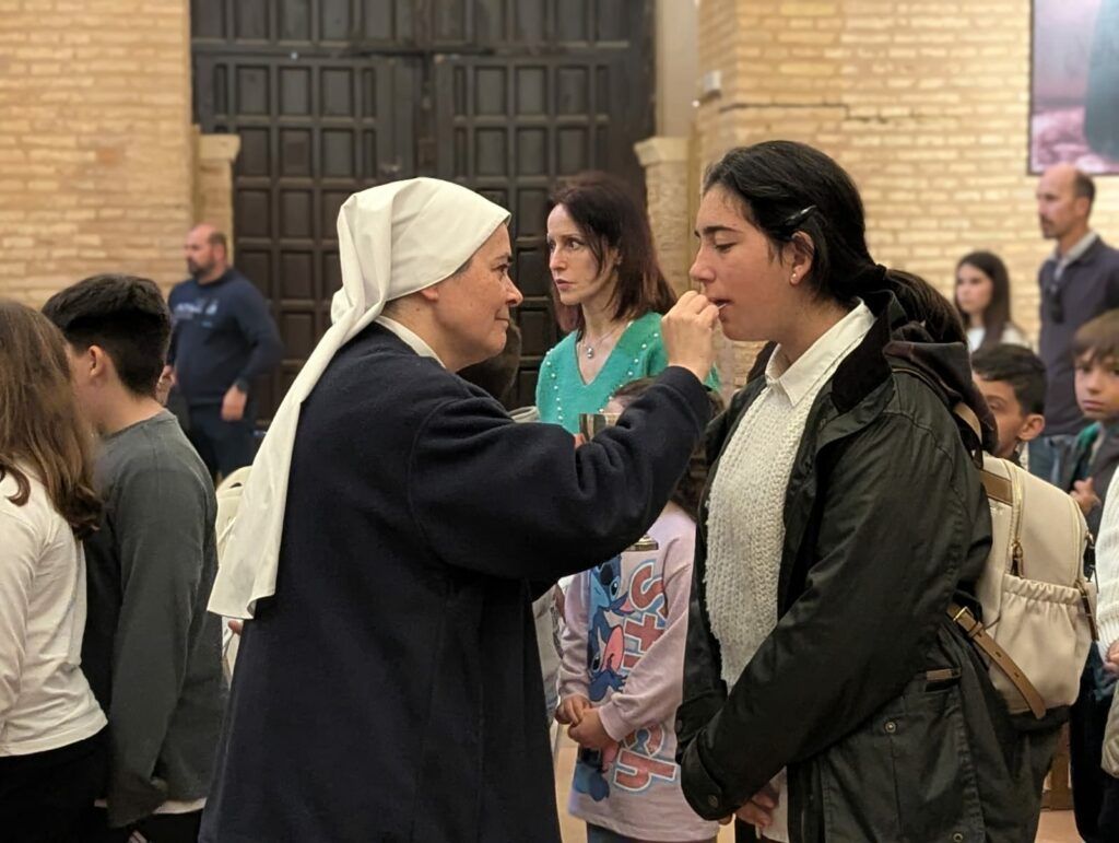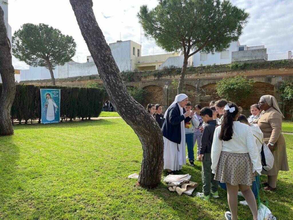A lo largo de la mañana, los participantes disfrutaron de diversos talleres y actividades dinamizadas por las monjas Siervas del Hogar de la Madre, que animaron el encuentro con propuestas formativas y lúdicas centradas en la fe. Uno de los talleres estuvo dedicado a profundizar en el misterio de la Eucaristía a través de una gymkana en la que los niños debían encontrar un gran tesoro: el Sagrario, lugar donde Jesús permanece siempre presente y donde nos espera para encontrarnos con Él.