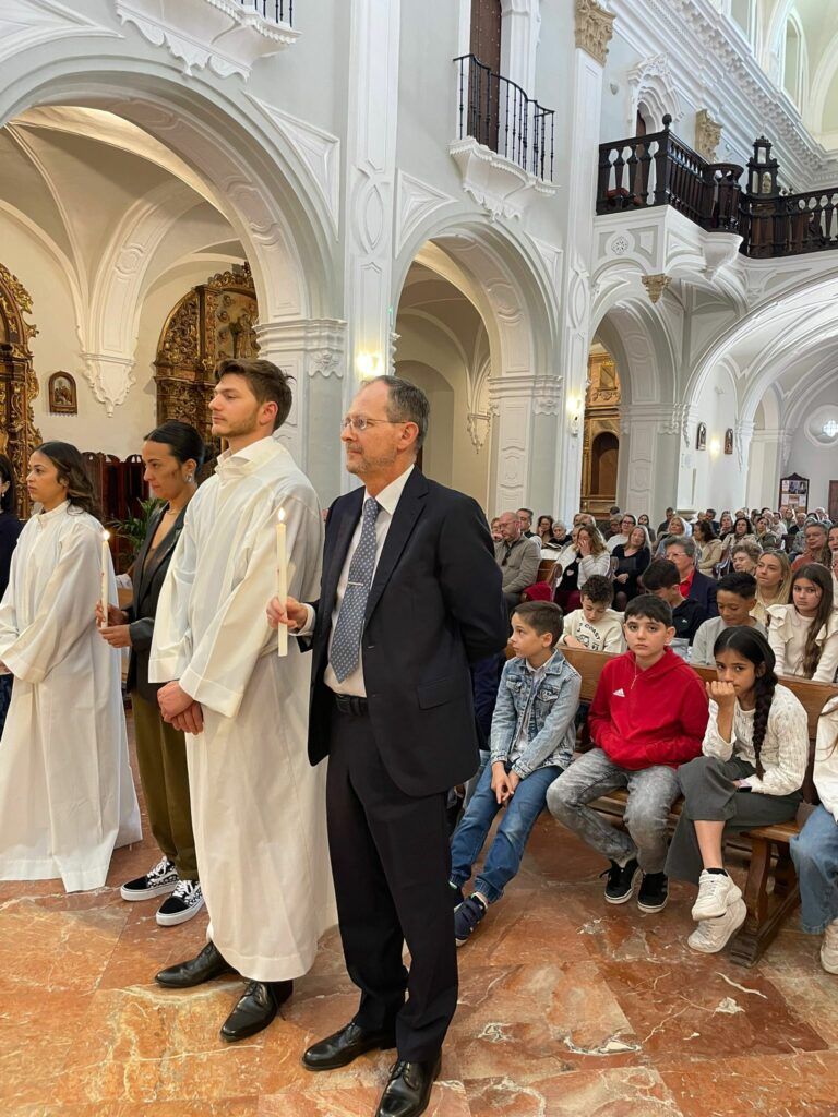 El ambiente vivido durante toda la celebración fue especialmente emotivo y entrañable. Familiares, padrinos y miembros de la comunidad acompañaron con cercanía y alegría a los nuevos cristianos, creando un clima de auténtica acogida eclesial. Los gestos litúrgicos, cargados de simbolismo, reflejaron la profundidad del momento: el agua del Bautismo como signo de vida nueva, la unción con el santo crisma como envío misionero y la participación en la Eucaristía como plena comunión con Cristo y con la Iglesia.